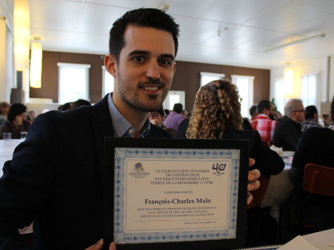 Deux nouveaux membres ont été intronisés au Panthéon de la Renommée du Club cycliste Dynamiks. À titre d’athlète, François-Charles Malo, qui a été double Champion Québécois en 2009 et 2010, fut intronisé. Alain Levasseur, membre du temple de la renommée du cyclisme québécois depuis 2012, a été admis à titre de bâtisseur pour son 40 ans de bénévolat au sein du Club cycliste. C’est avec émotion qu’il a partagé avec la foule présente quelques souvenirs de l’histoire du Club.