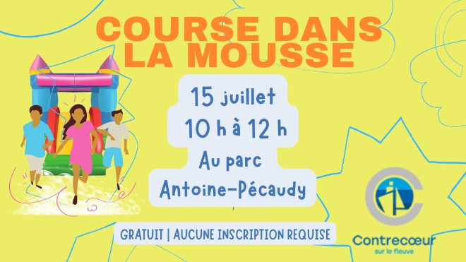 La Course dans la mousse aura lieu ce samedi 15 juillet au parc Antoine-Pécaudy. Il s’agit d’une course avec obstacle (jeux gonflables) et canon mousse qui se déroulera sur la piste cyclable.
