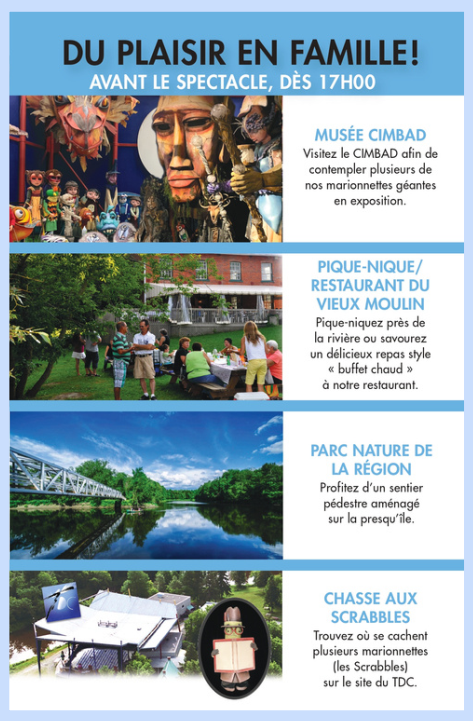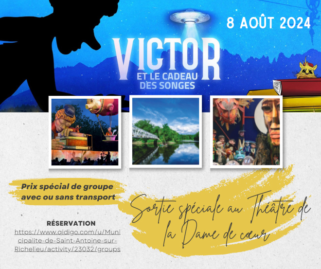 Le départ se fera du centre communautaire vers les 15h30 en autobus, le retour sera prévu vers 21h30, après le spectacle.