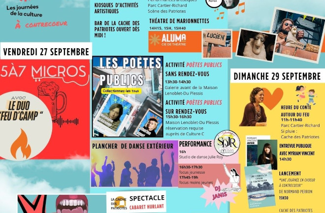 La Ville de Contrecoeur et Culture C, sous la direction artistique de Michelle Parent, sont ravies d’annoncer la programmation des Journées de la culture 2024, un événement incontournable qui se déroulera du 27 au 29 septembre prochain. Cette fin de semaine haute en couleur promet d’être une célébration dynamique des arts et de la culture avec une programmation riche et diversifiée se déroulant au parc Cartier Richard, à la Maison Lenoblet-Du Plessis et à la Cache des Patriotes.