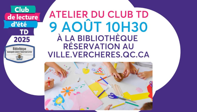 Le 9 août à 10h30, la Bibliothèque Dansereau-Larose invite les jeunes lecteurs de 5 à 8 ans à un atelier créatif.