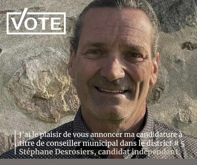 Stéphane Desrosiers, candidat indépendant comme conseiller municipal dans le district 5