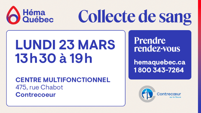 Héma-Québec recommande de prendre rendez-vous avant de se présenter en collecte. Vous pouvez le faire facilement en ligne : https://www.hemaquebec.ca/prendre-rendez-vous ou par téléphone au 1 800 343-7264.