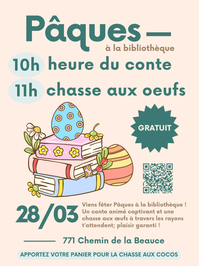 La Municipalité de Calixa-Lavallée invite les familles et les tout-petits à célébrer Pâques à la bibliothèque municipale lors d’une activité ludique et festive spécialement conçue pour les enfants. Le samedi 28 mars 2026, la bibliothèque transformera ses rayons en un univers enchanté pour une matinée dédiée à Pâques. Les jeunes participants pourront profiter d’une programmation joyeuse et éducative, alliant lecture et amusement.