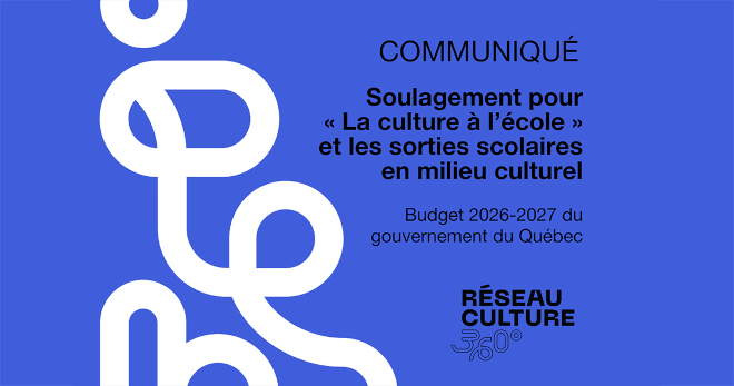Tel que revendiqué par le Front commun pour les arts, dont fait partie le Réseau Culture 360°, le gouvernement prévoit 119 M$ sur 5 ans pour maintenir le financement du programme La culture à l’école et les sorties scolaires en milieu culturel. Rappelons que le gouvernement envisageait des coupes de 13 M$ pour 2026-2027 et de 26,5 M$ pour les années subséquentes.